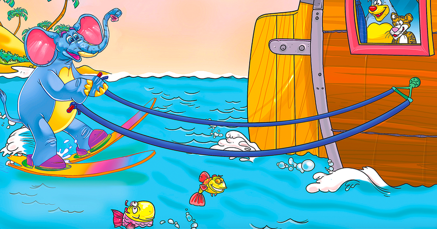 Well I’ve got news for you… Elephants can surf too, as you will discover. But, that’s not all I can do. I’m an Elephant, and elephants are very smart and talented!! I can also water ski, para sail, drive ocean vessels, snowboard, take long naps, ‘Rock my Electric Guitar", and perform many other Animated activities and tasks!! However, some of them are
